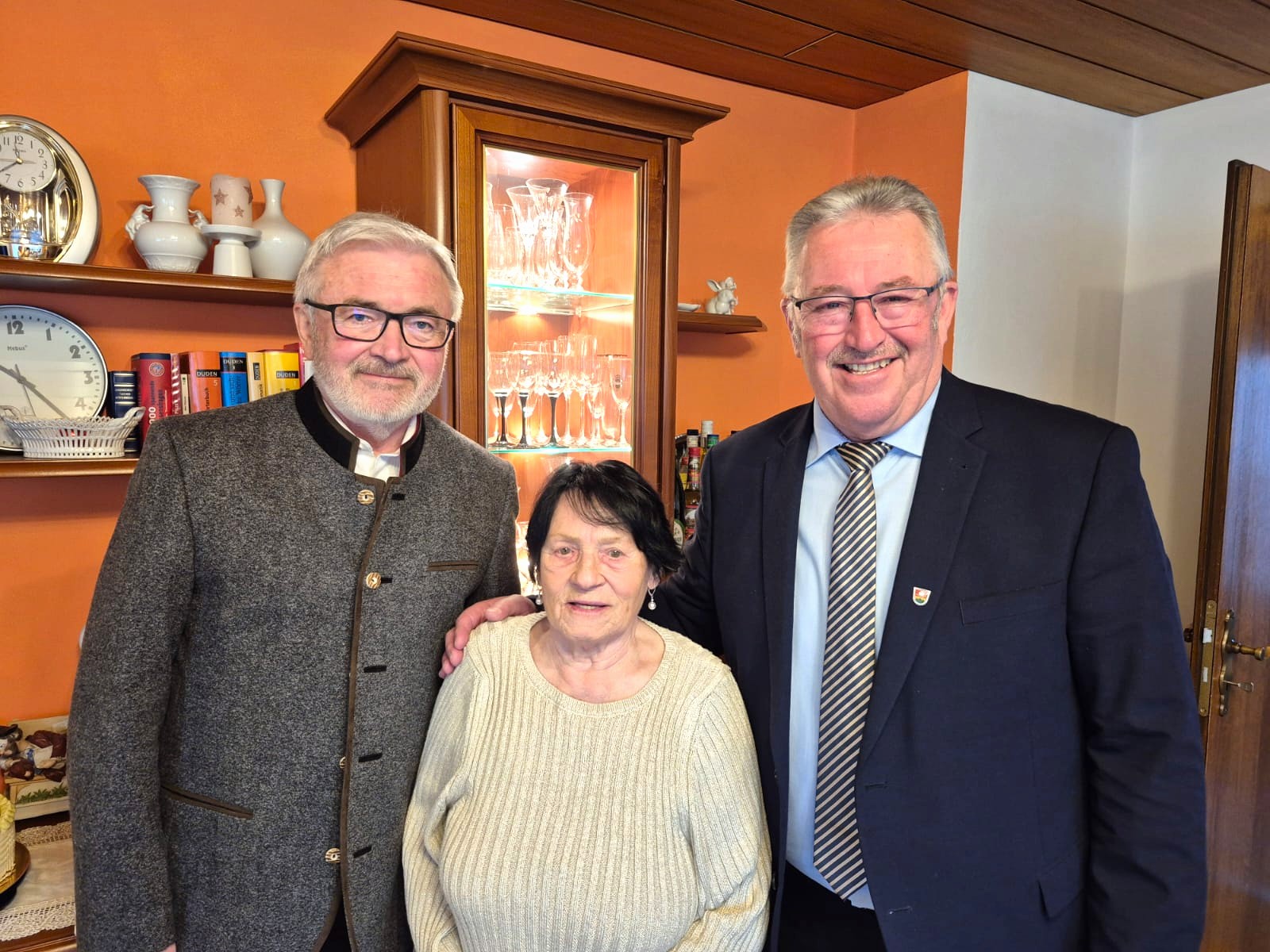Im Foto v. li.: Diakon Albert Achatz, Jubilarin Maria Marquardt, 1. Bürgermeister Walter Nirschl; Foto: Walter Nirschl