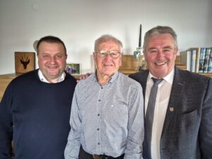 Auf dem Foto v. li.: Pater Paul Ostrowski, Jubilar Josef Pledl, 1. Bürgermeister Walter Nirschl; Foto: Walter Nirschl