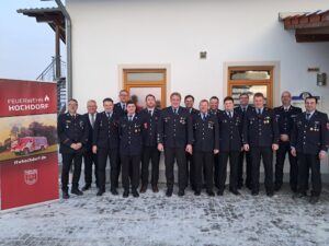 von links: Kreisbrandinspektor Michael List, 1. Bürgermeister Walter Nirschl, Leiter der Kinderfeuerwehr Florian Pledl, Aktivenvertreter Stefan Kern, Gerätewart Alexander Kollmer, 2. Vorsitzender Thomas Nirschl, 1. Vorsitzender Hans Trum, Kassier Matthias Kraus, 1. Kommandant Michael Pledl, Passivenvertreter Markus Nirschl, Jugendwart Philip Fischer, Schriftführer Michael Mader, 2. Kommandant Christian Trum, stv. Vorsitzender KFV Thomas Lang, Atemschutzwart Robert Kern; Bilder: FFW Hochdorf