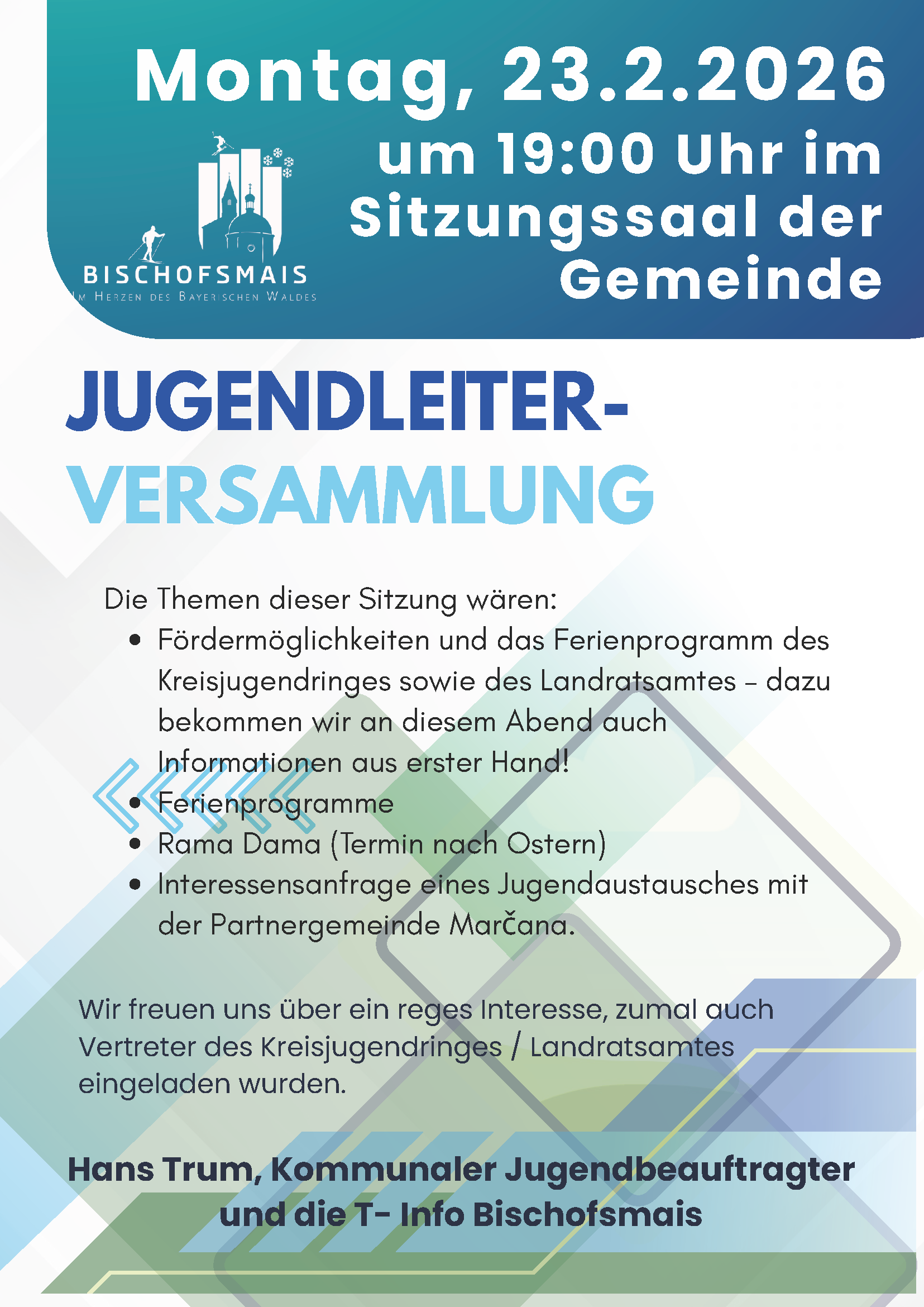 Jugendleiterversammlung am Montag, 23.02.2026 um 19:00 Uhr im Sitzungssaal