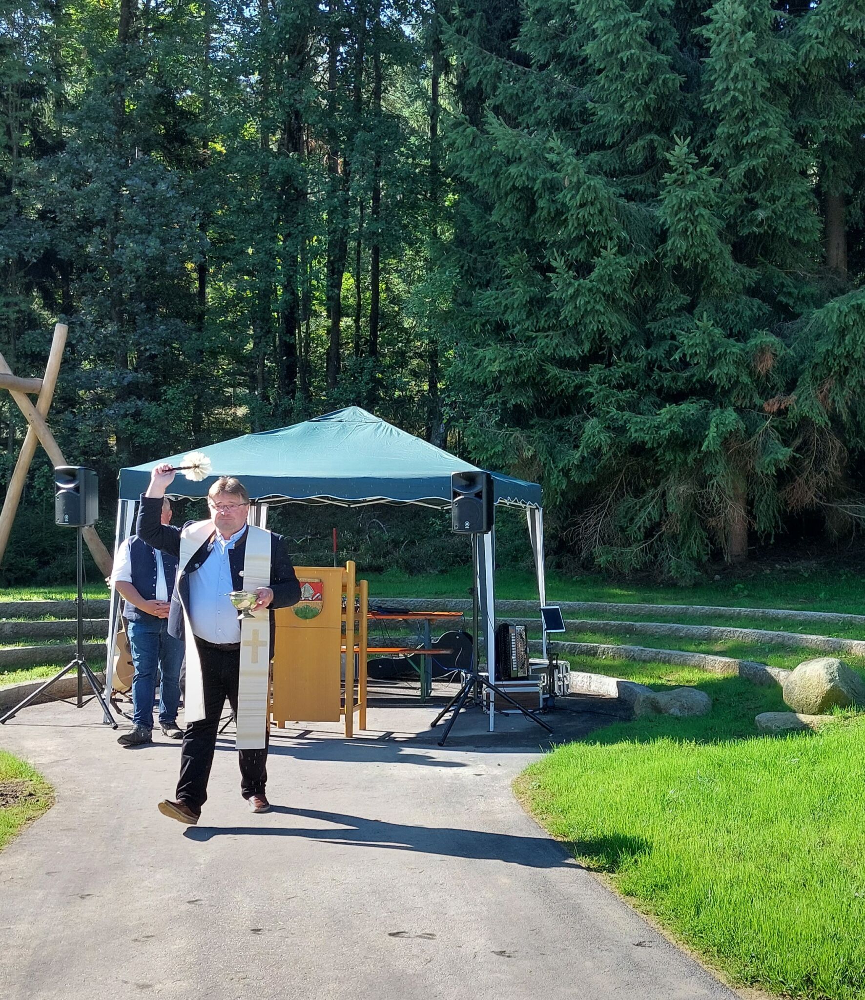 Sichtlich stolz war Bürgermeister Walter Nirschl am vergangenen Samstag, als der Spielplatz „Bärnstoa“ gesegnet und eröffnet wurde.
